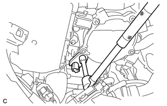 (b) A l'aide d'une clé à écrou de 19 mm, reposer le capteur de température du liquide de refroidissement du moteur sur le sous-ensemble de culasse.