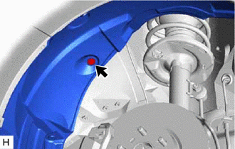 | (a) Déposer la vis, puis détacher la doublure d'aile avant. |