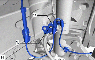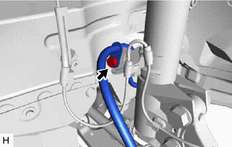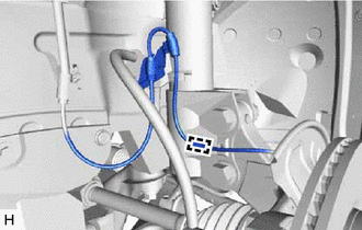 | (c) Reposer le flexible avant sur le support de flexibles avec le boulon. Torque: 29 N·m {296 kgf·cm, 21 ft·lbf} REMARQUE: Le boulon serre le flexible avant et le capteur de vitesse avant. S'assurer que le flexible se trouve au-dessus du capteur de vitesse avant. |