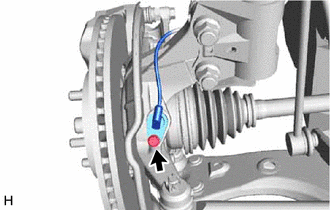 | (f) Déposer le boulon et le capteur de vitesse avant du porte-fusée de direction. REMARQUE: