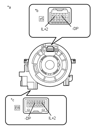 (a) Débrancher le connecteur E8 du sous-ensemble de câble en spirale avec capteur.