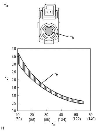 La thermistance de refroidisseur (capteur de temp. d'habitacle) est posée dans le tableau de bord afin de détecter la température d'habitacle qui permet de commander le système de climatisation. La résistance de la thermistance du refroidisseur (capteur de temp. d'habitacle) varie en fonction de la température de l'habitacle. La résistance augmente à mesure que la température diminue. La résistance diminue à mesure que la température augmente.