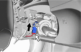 | (a) Engager les 2 griffes pour reposer l'ensemble de contacteur d'avertissement de déverrouillage sur le support supérieur de colonne de direction, comme indiqué sur le schéma. |