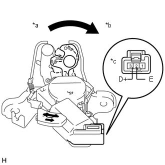 (2) Appliquer la tension de la batterie sur le moteur de serrure de porte et vérifier le fonctionnement du moteur de serrure de porte.