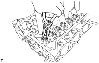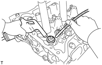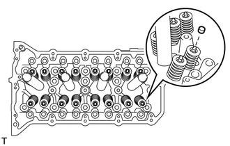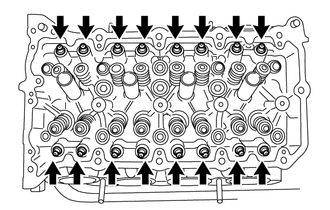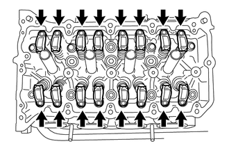 | (a) Déposer les 16 ensembles de dispositif de réglage de jeu de soupape. CONSEIL: Disposer les pièces déposées dans l'ordre correct. |