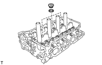 | (a) A l'aide d'une pince à bec fin, déposer les bagues d'étanchéité de queue de soupape. |
