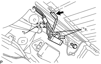 | (c) pour le montant avant côté gauche: (1) Débrancher le connecteur. (2) A l'aide d'un extracteur d'agrafes, libérer les 6 attaches. |