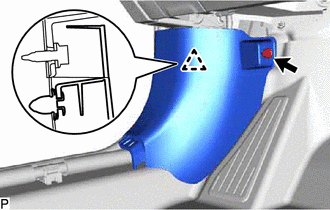 | (d) pour côté du montant avant droit: (1) Débrancher le connecteur. (2) A l'aide d'un extracteur d'agrafes, libérer les 3 attaches. |