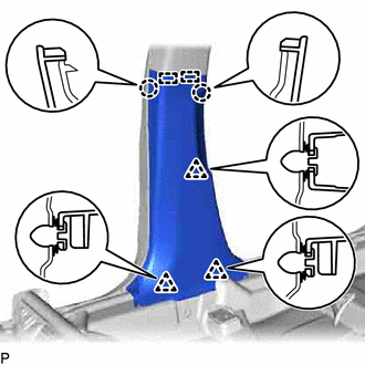 - Remplacer l'agrafe de garnissage de montant avant par un élément neuf lorsqu'elle est déposée du véhicule.