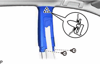 | (b) Libérer les 2 agrafes et déposer la poignée de maintien. |