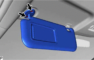 | (a) pour vis "TORX": (1) A l'aide d'une clé à douille "TORX" T25, déposer les 2 vis et l'ensemble de pare-soleil gauche. |