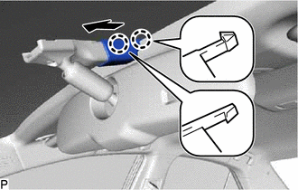 | (a) Libérer les 2 griffes et coulisser le cache de rétroviseur intérieur arrière comme indiqué sur le schéma. |