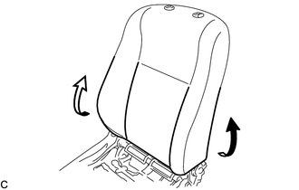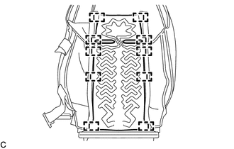 | (a) Déposer les 10 attaches d'étiquette et l'ensemble de chauffage de dossier de siège avant de la housse de dossier de siège avant de type séparé. |