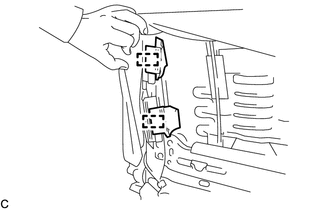 (2) Libérer la griffe pour détacher le faisceau de câbles d'ensemble d'airbag de siège avant.