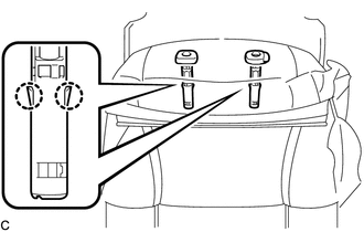 | (h) Libérer chaque griffe et déposer les 2 supports d'appuie-tête de siège avant. |