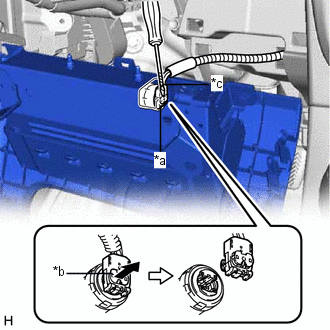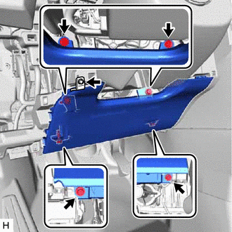 (f) Débrancher le connecteur d'airbag pour déposer l'ensemble d'airbag de tableau de bord inférieur n° 1.