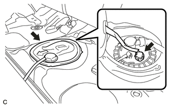 DEMONTAGE PROCEDURE 1. DEPOSER L'ENSEMBLE DE SONDE DE NIVEAU DE CARBURANT Cliquer ici 2. DEPOSER LA POMPE A CARBURANT (a) Libérer la griffe et débrancher la durite du filtre de pompe à c ...