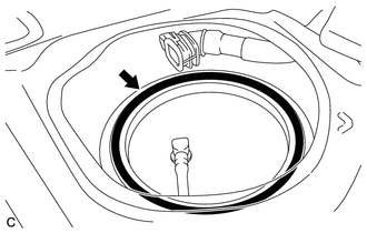 | (b) Déposer le joint d'étanchéité de réglage de tuyau d'aspiration de carburant de l'ensemble de réservoir à carburant. |