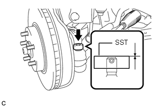 (d) A l'aide du SST, détacher le sous-ensemble d'embout de barre d'accouplement gauche du porte-fusée de direction.