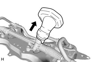 | (a) Déposer le sous-ensemble de cache d'orifice de colonne de direction n° 1 de l'ensemble de tringlerie de direction. |