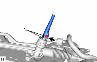| (a) Placer des repères d'alignement sur l'arbre intermédiaire de direction et sur l'ensemble de tringlerie de direction assistée. |
