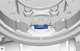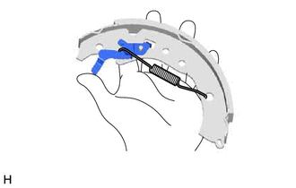 | (a) Déposer le ressort de tension de levier de réglage automatique de frein arrière et le levier de réglage automatique de frein arrière. |