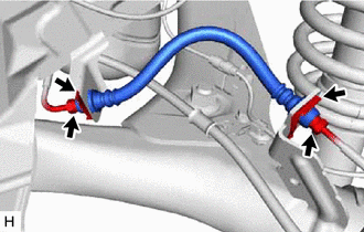 | (a) A l'aide d'une clé à écrou de raccord, débrancher les 2 canalisations de frein tout en maintenant le flexible arrière à l'aide d'une clé. REMARQUE: