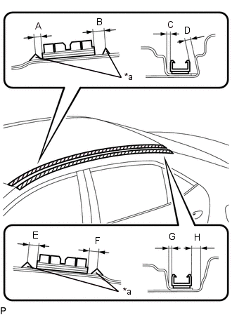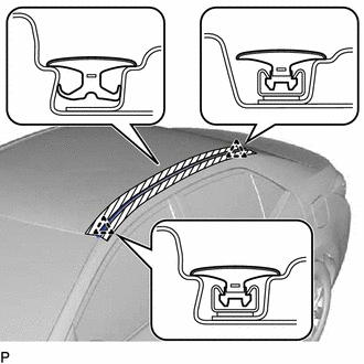 | (a) Appliquer un cordon de produit adhésif de 2 à 3 mm (0,0787 à 0,118 po) de large (3M DP-105 ou équivalent) sur les 2 agrafes neuves de gouttière de toit n° 1. CONSEIL: Force d'adhérence (résistance à la traction): 13,7 MPa (140,0 kgf/cm², 1 987 lb/po²) minimum (à une température de 23°C (73°F)). |