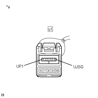 | (b) Débrancher le connecteur de l'ensemble d'adaptateur de prise stéréo u1 n° 1. |