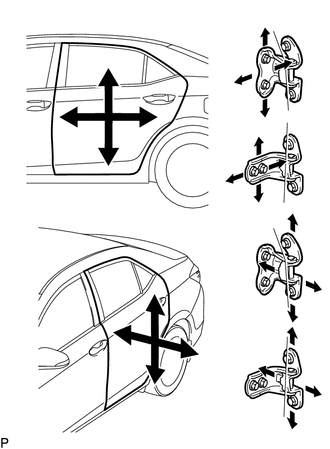 | (a) A l'aide d'un SST, desserrer les boulons de charnière de la carrosserie du véhicule et régler la position de porte. SST: 09812-00010 |
