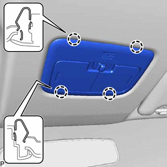 | (b) Engager les 4 agrafes pour reposer l'ensemble d'éclairage de lecture. |