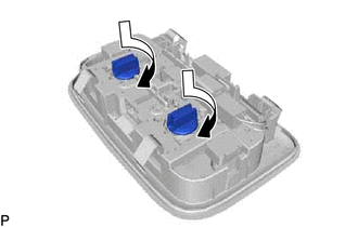 | (b) Tourner les 2 douilles d'éclairage de lecture avec les 2 ampoules d'éclairage de lecture comme indiqué sur le schéma afin de reposer l'ensemble. |