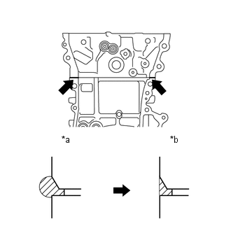 (a) Appliquer de la pâte étanchéifiante (diamètre de 4,0 mm (0,157 po)) sur le sous-ensemble de bloc-cylindres, comme indiqué sur le schéma.