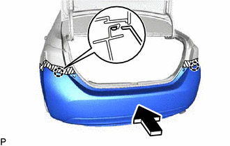 REMONTAGE PROCEDURE 1. REPOSER LE BRAS DE PARE-CHOCS ARRIERE GAUCHE (a) Reposer le bras gauche du pare-chocs arrière avec les 3 boulons. Torque: 36 N·m {367 kgf·cm, 27 ft·lbf} ...