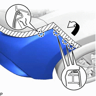 (a) Déplacer l'ensemble de pare-chocs avant pour le mettre en place et reposer les 3 agrafes.