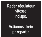 Un signal sonore se déclenche également. → Utilisez le système de régulateur de vitesse actif lorsqu'il est à nouveau disponible. |