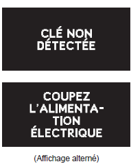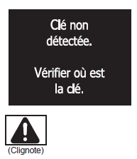 essayez de démarrer le moteur. → Démarrez le moteur en ayant la clé électronique avec vous. |