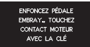 du moteur. → Appuyez sur le contact du moteur tout en appuyant sur la pédale d'embrayage dans les 10 secondes qui suivent le déclenchement du signal sonore. |