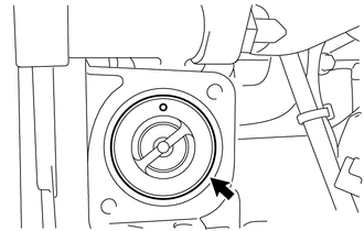 | (c) Vérifier la levée de soupape. Levée de soupape standard: 10 mm (0,394 po) minimum à 93°C (199°F) Si la levée de soupape n'est pas conforme aux spécifications, remplacer le thermostat. |